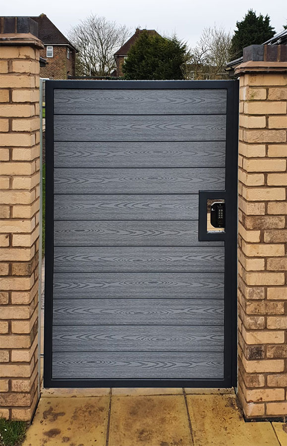 Our metal-framed gates with composite infill offer a modern, low-maintenance alternative to traditional wood or full metal gates. Ideal for residential and commercial settings, these gates combine durability with a clean, architectural finish.
